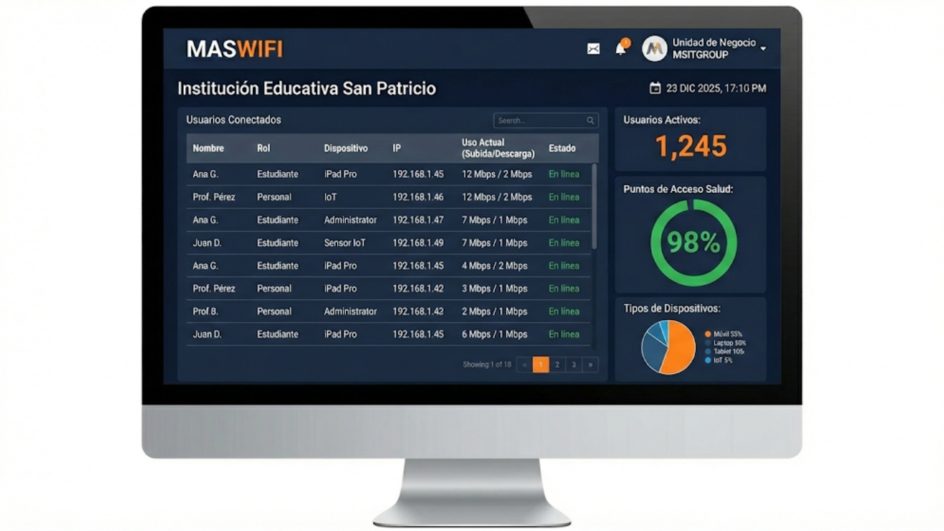 MasWIFI es una solución que fue diseñada y desarrollada por nuestros ingenieros para apoyar a las instituciones y empresas a administrar y usar el WIFI y el Internet sin complicaciones y sin invertir en costosos equipos y servidores.